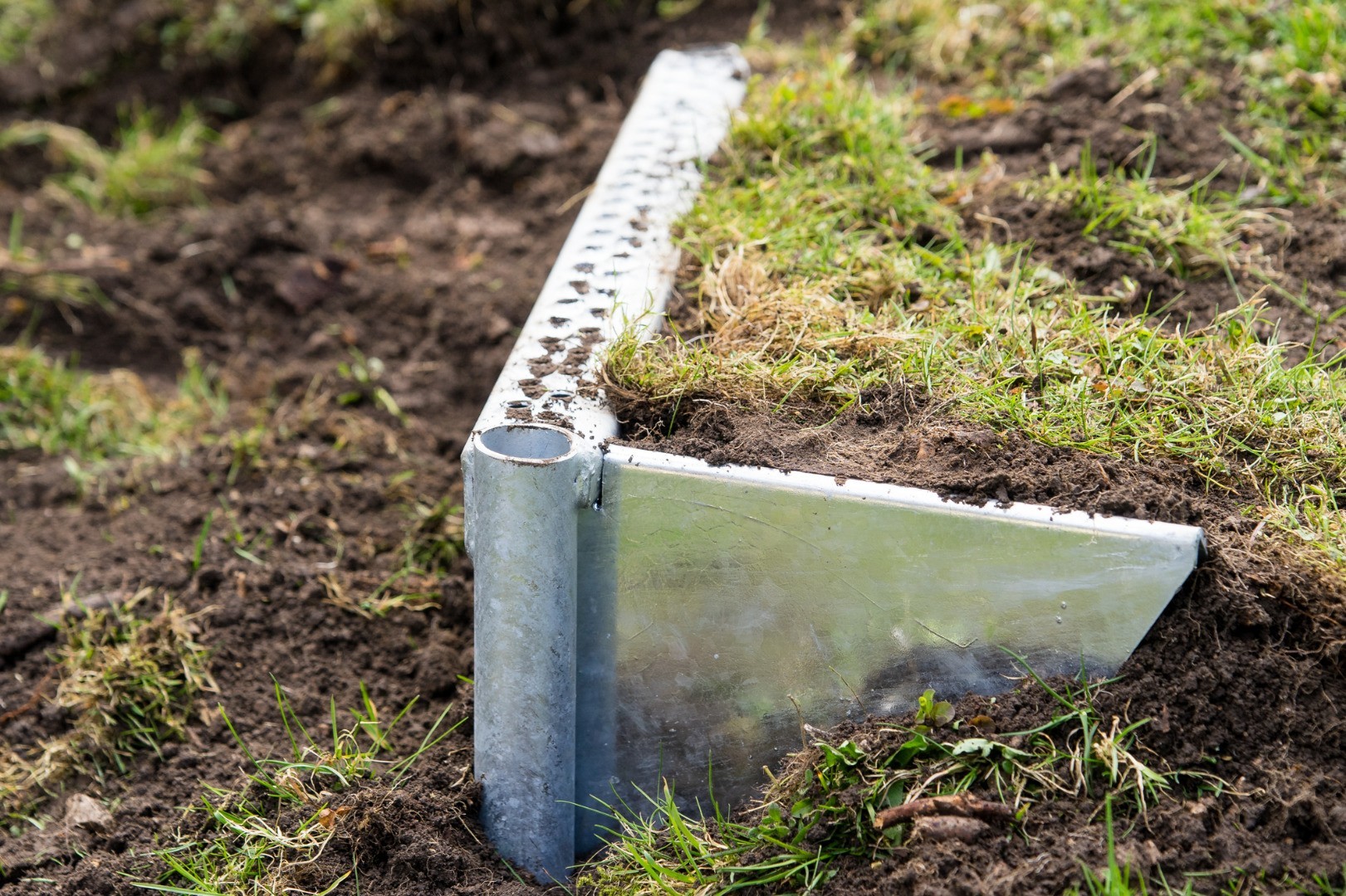 - Seitenbleche rechts und links verhindern das Wegrieseln des Schüttmaterials.